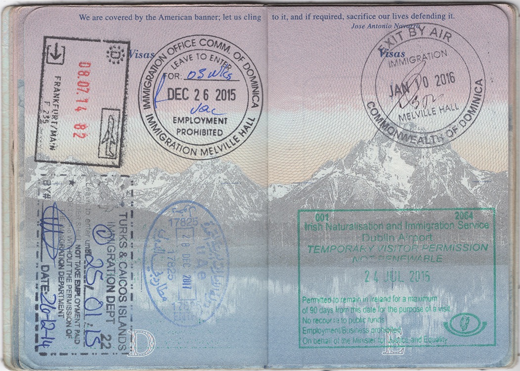 | Germany Entry (Frankfurt/Main) 08 Jul 2014 | Dominica Entry (Melville Hall) 26 Dec 2015 | Dominica Exit (Melville Hall) 10 Jan 2016 | |